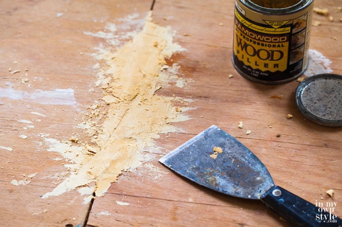 I had to fill these cut marks with wood filler. When the filler was dry, I sanded it smooth with my trusty sander with 100 grit sandpaper on it and then painted over it and was good to go.