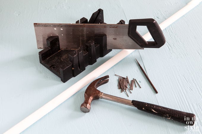 - Shoe molding/trim color paint/finishing nails/nail punch/hammer/pencil/miter box & saw/measuring tape