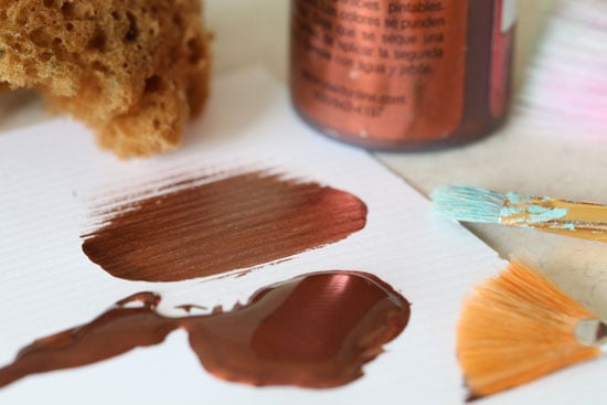 9. Dip a clean damp sea sponge into metallic copper paint. Dab it all over the surface of the light, making sure to move it as you dab so you don’t dab the same sponge pattern all over.