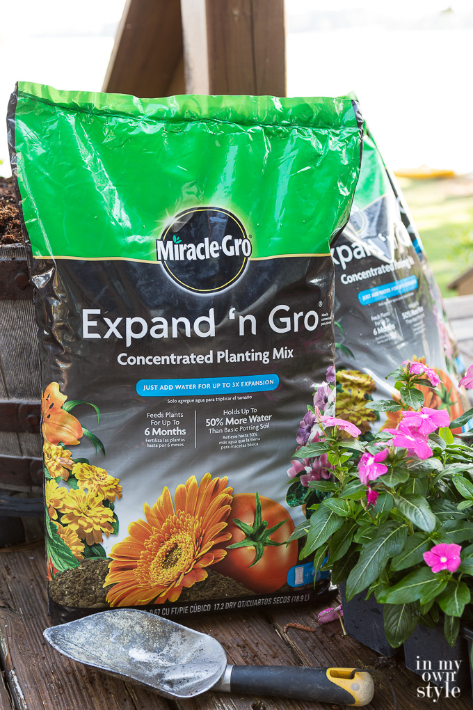 This year, Miracle Gro has a new garden soil that can be used not only for flowers, but for veggies, plants, succulents and more. It is called Expand N’ Gro Concentrated Planting Mix that makes your soil lighter and creates more air space to give your plants the room they need to thrive.