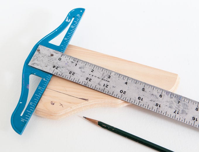 2. Using a ruler, measure down from the long side of the bracket to the height needed. Mark with pencil.