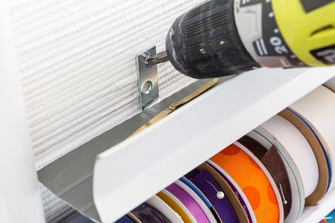 I also like that the “drip edge” was inexpensive and white. No paint was needed to make my DIY ribbon rack!