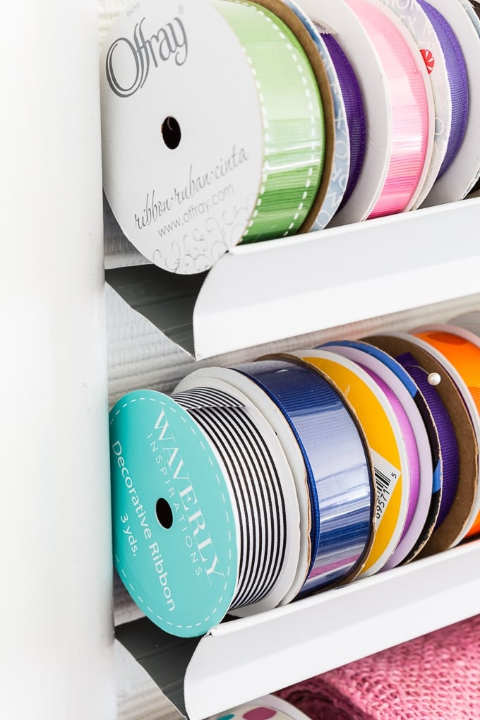 Of the 3 ribbon storage ideas shown in this post, this one is the easiest and doesn’t require any DIY skills or tools.