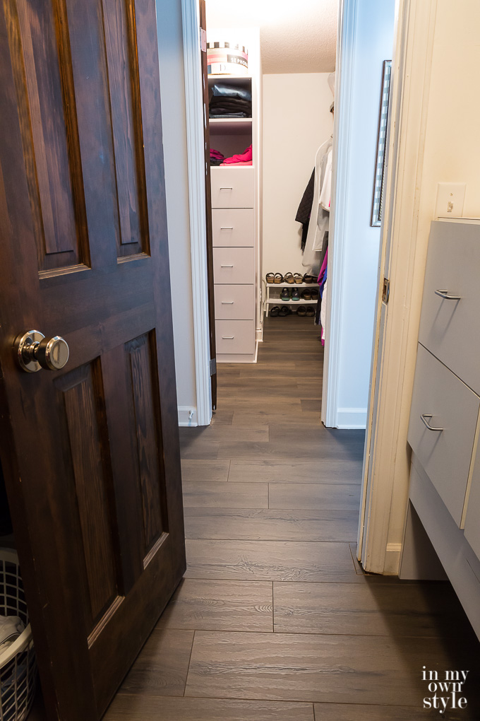 Keeping the transition of the flooring seamless into our his and hers closets was important to me.