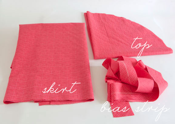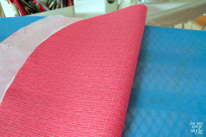 5. To give the quilting fabric more body so it falls well, I ironed on .99 cents a yard lightweight fusible interfacing to the back of the top and skirt pieces of fabric. It is not needed for the piping.