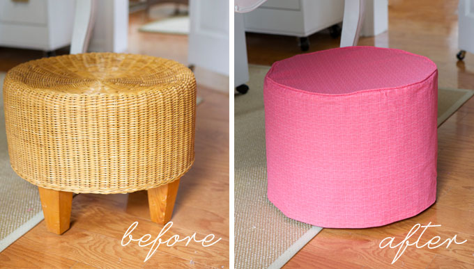 The ottoman looks great with and without the cover. I doubt I’d ever paint it but just change the cover so it could be super versatile, because someday you might want that wicker look again. I’ve never done piping or even a zipper, but this may push me to give it a try for a little wicker bench seat that I have. Thanks for the idea and inspiration!