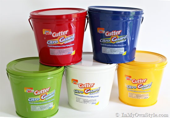 Recently when shopping at Walmart, I saw these colorful citronella candle buckets for $5.00. I like to sit outside every night in my backyard and always light a citronella candle so the bugs don’t chase me back inside. I liked that the candles had a lid to keep out rain water. I put a white one in my cart.