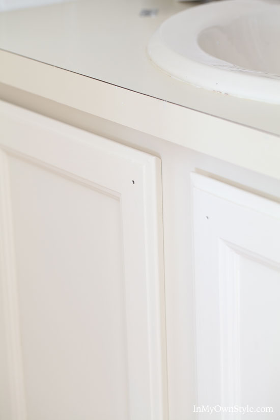 Since I am using lots of pure white in the room, I used the off-white color for the cabinet so that the existing counter top and sink color would not stand out too much or look off.