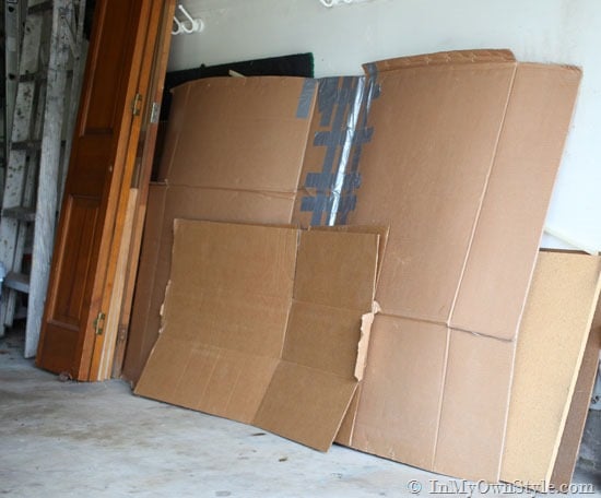 I also like to use a box top to place items in. You can find these in the box stacks by the check out lines at Costco or when you buy cans of dog food in bulk.