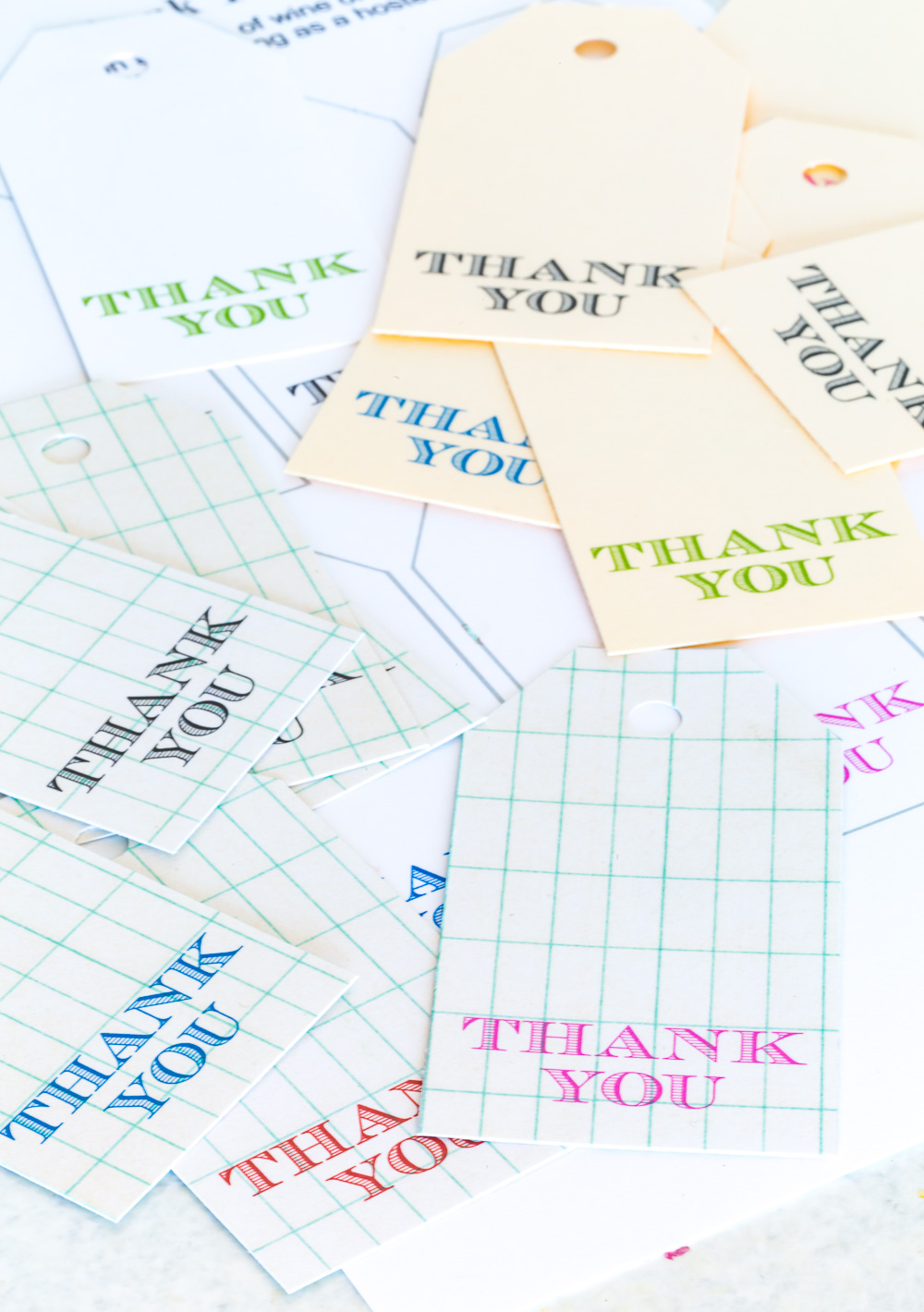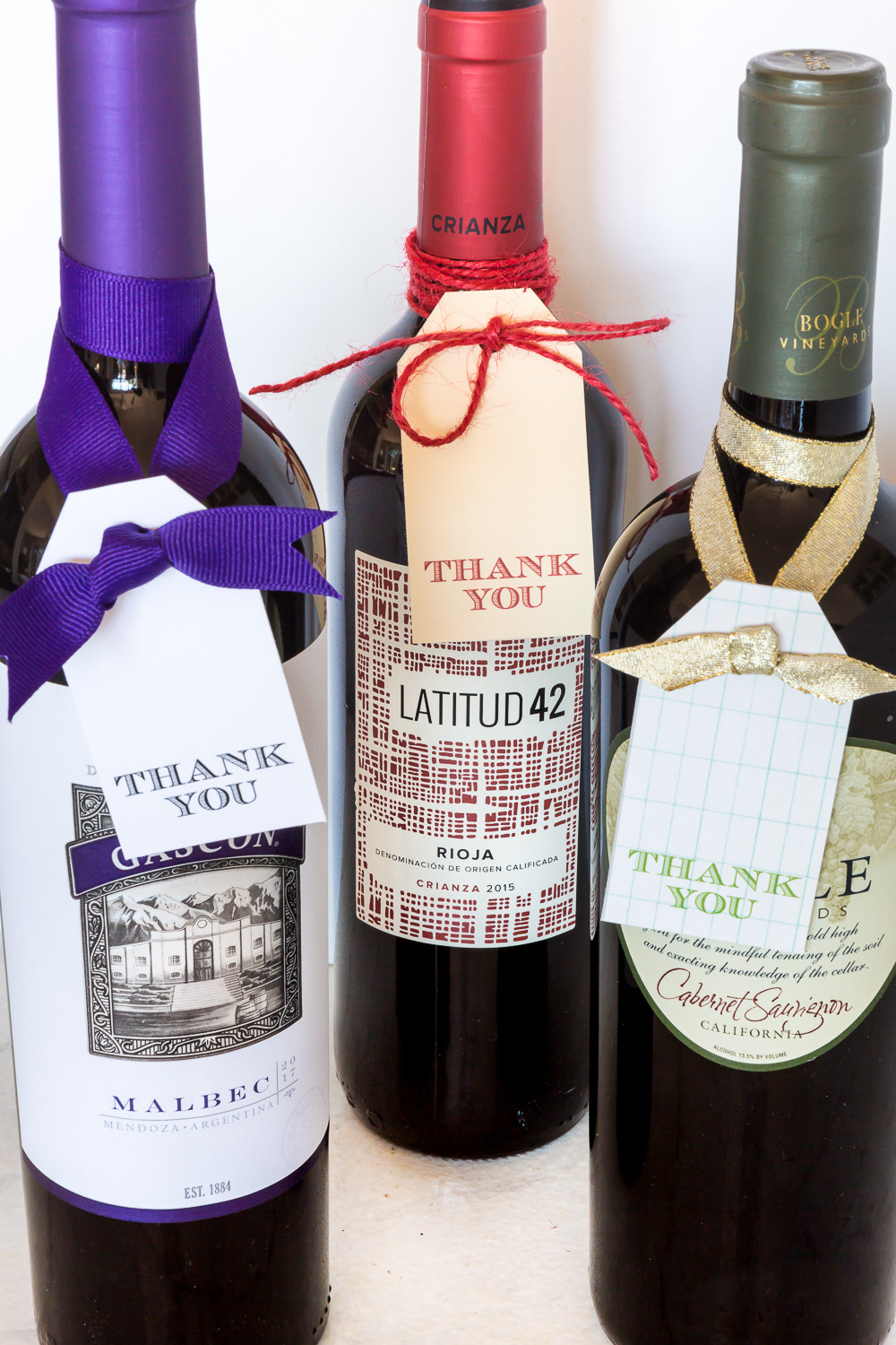 Free printable Thank You gift tags to use when giving a hostess gift of wine or flowers.