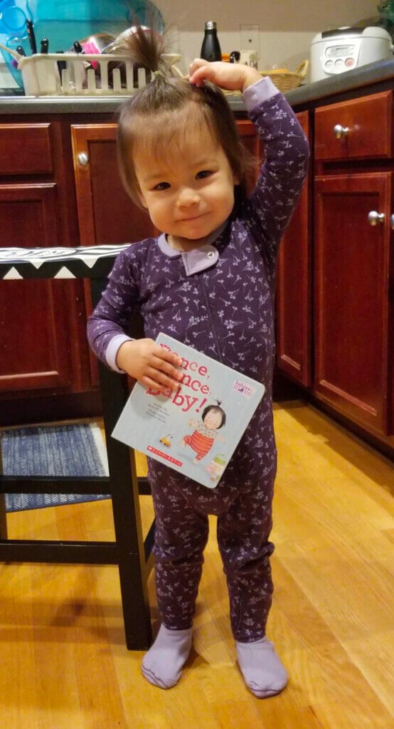 She is growing so fast! Just yesterday, she realized her ponytail sprout is just like the little girl on the cover of her book. :-)