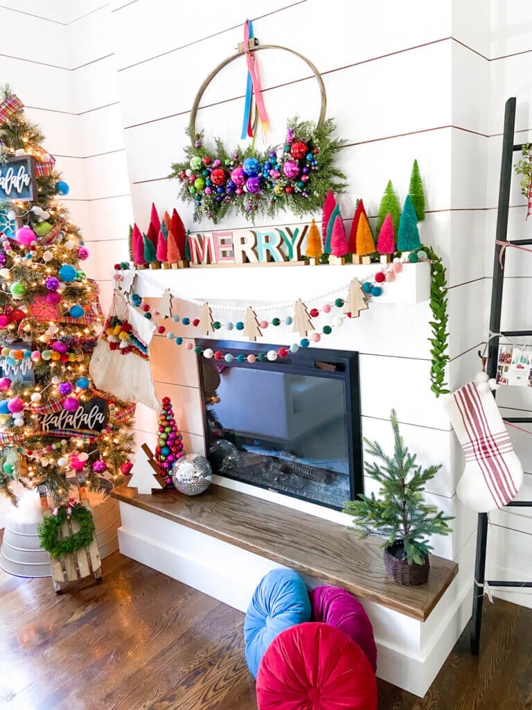 One of my favorite Christmas decorating ideas I came across on the tours last week was this mantel. It surely will even make the Grinch smile, so colorful and cheery!