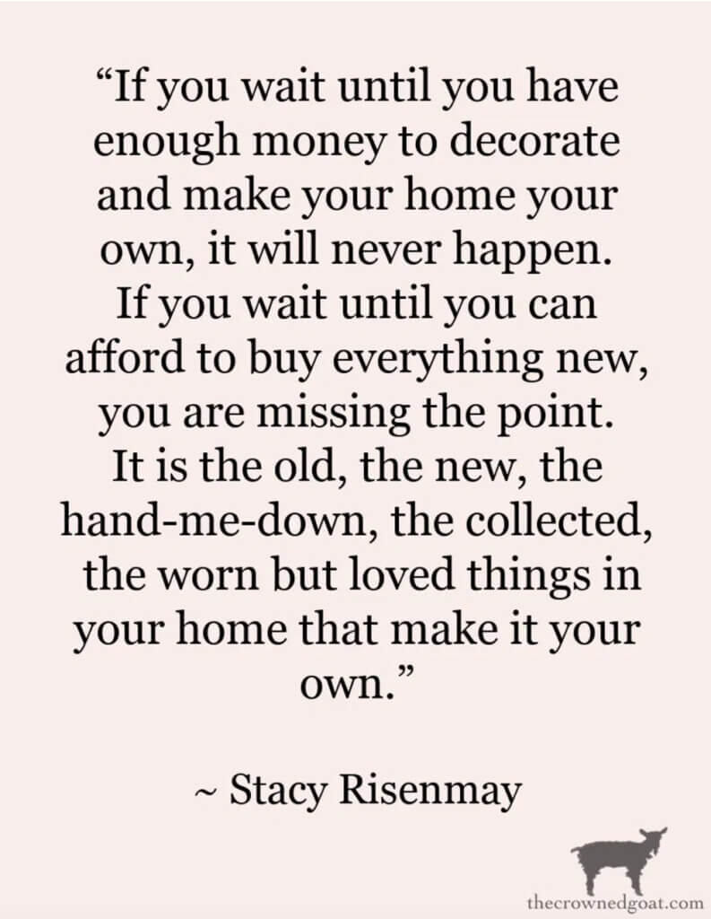 Last but not least. I will leave you with this…my favorite find of the week. Smart advise that CoCo at The Crowned Goat made into this graphic using great advise another home dec blogger – Stacy Risenmay wrote…