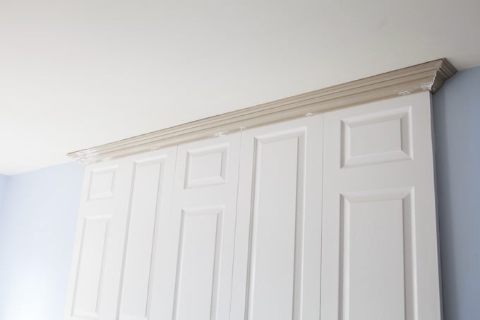 7. I used the crown molding from the previous bed hanging. It is screwed right into the top of the doors.