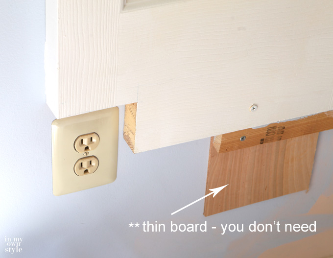 6. We used a jigsaw to cut out the corner of the end door so it did not cover the electrical outlet. ( *** the thin boards I mentioned above – you don’t need)