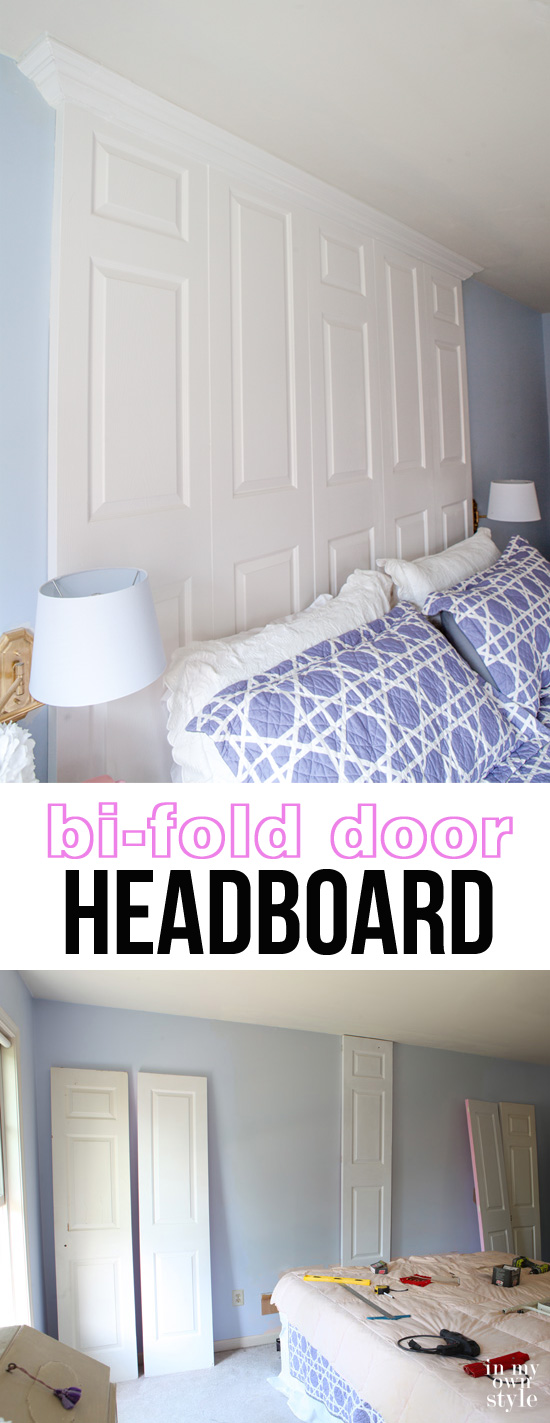 Today I have the tutorial on how I created the headboard using bi-fold doors.