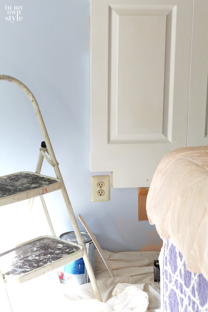 8. I used white caulk to fill in any gaps and also along the top of the crown molding. I then primed and painted everything with Valspar Bistro White in semi-gloss.