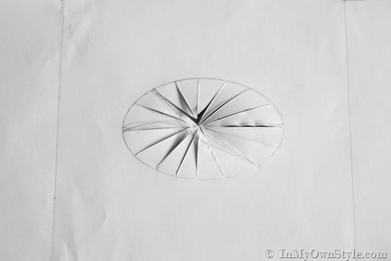 9. Use your fingers to smooth center hole tabs to the underside of the top. Apply white glue or Mod Podge to secure.