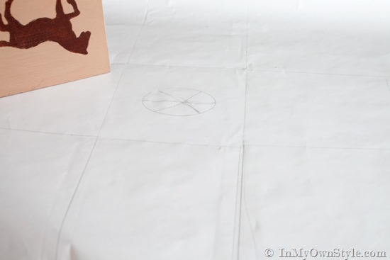 1. Lay giftwrap, pattern face down. Place tissue box upside down on center of giftwrap. Use a pencil to trace hole on top of box onto paper.