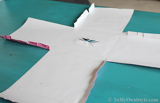 7. Repeat on the other 3 side’s, but do not fold over the tabs on the last side.