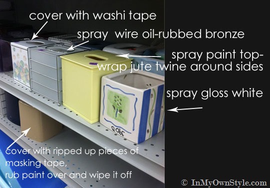 With a little imagination and decorative vision, items from the thrift store shelf can be easily transformed with paint, tapes, twine, you name it – there is no limit on ways to make something your own.