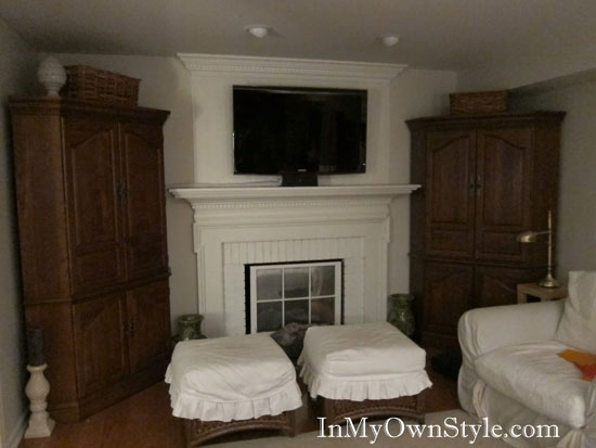 The lights on the top of the hutch help balance the light in the room. When the chandelier is dimmed and I have the hutch lights and two lamps on the mantle on the opposite side of the room all lit – the room looks magical. When I entertain, I make sure I plug in all my mood lights around my house. They add quite a bit to up the ambiance.