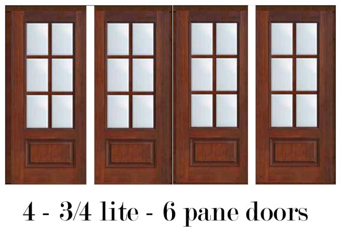 One of the bigger home improvement projects I would like to do sooner, than later to the front of the house, is to replace the entire front door and two glass panels on either side with 4 – 3/4 light – 6 pane doors. Something that will look like this illustration.