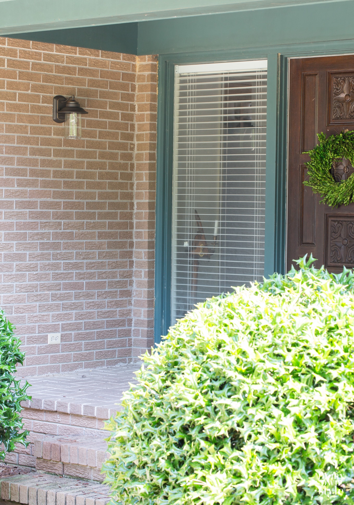 I must say your present door is pretty impressive but I can see the new one will let in more light.Loved your outside light,thank you for the tips and ideas.I loved both your wreaths they are beautiful and simple,make a great impact.