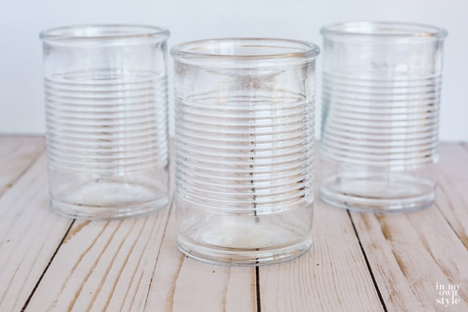 - Cut fabric to size needed. For the tin can glasses, I cut the fabric 3″ x 12″.
