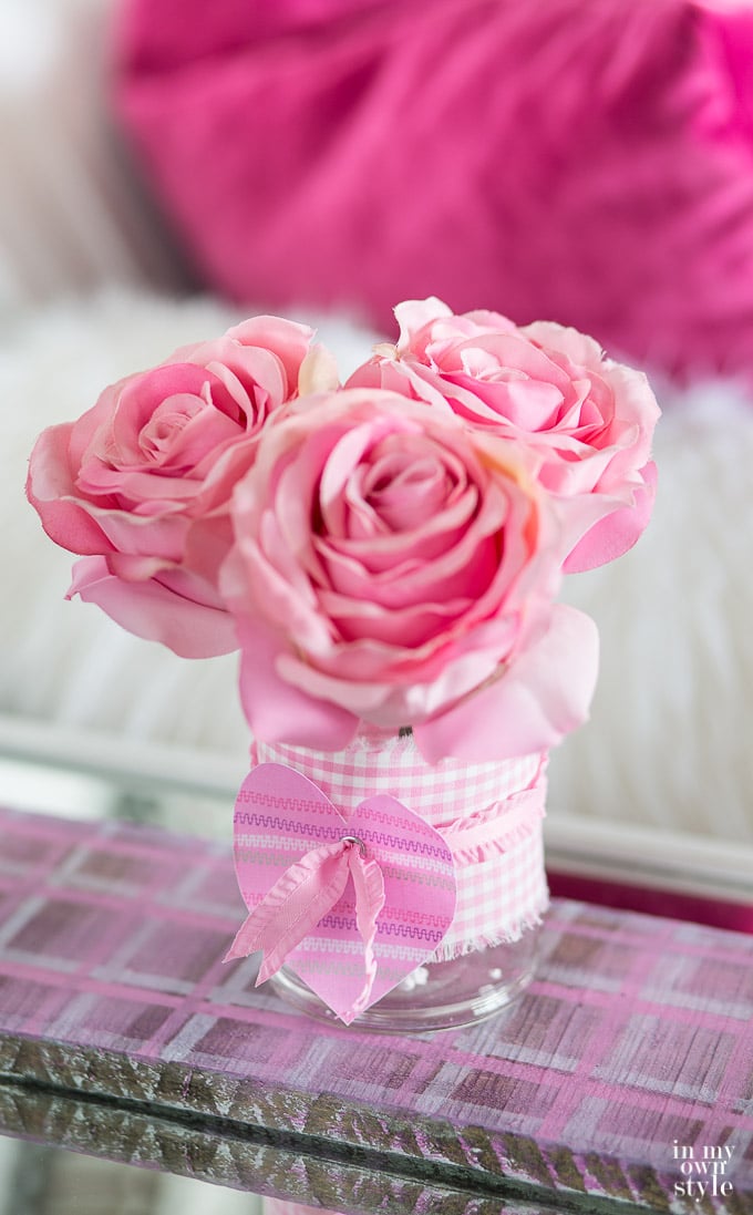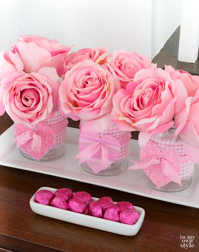 If you like to craft and have a closet full of unused craft supplies, then you may have all you need to make this pretty in pink Valentine Flower Vase Trio.