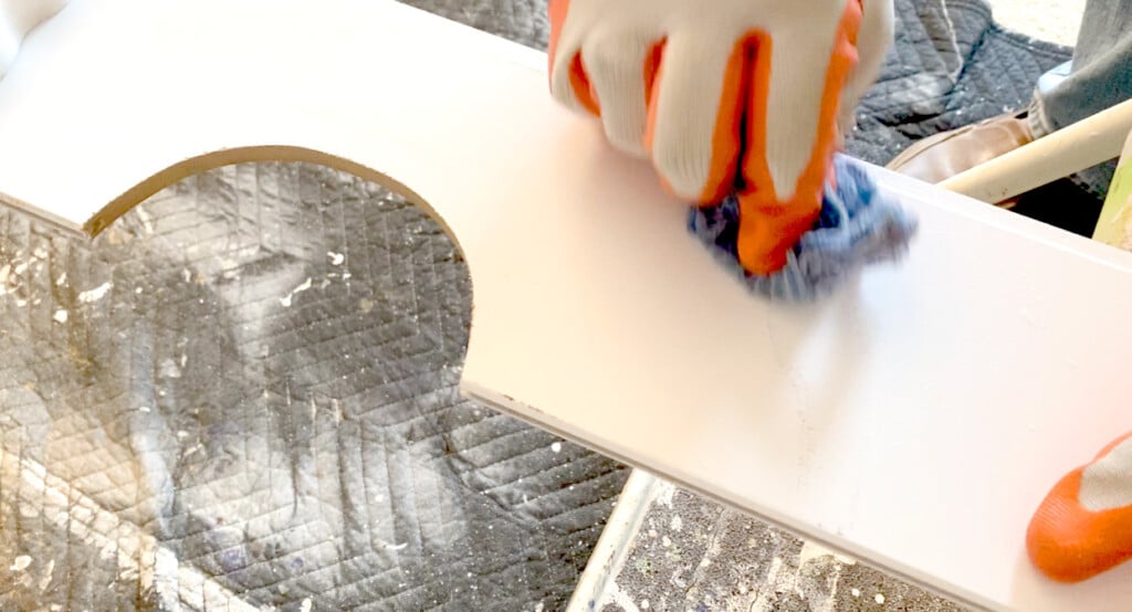 - SPACKLE and sandpaper to cover nail holes on crown molding