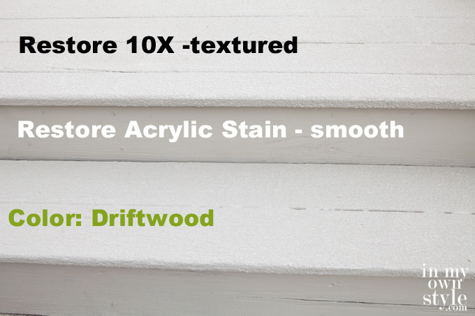 Here you can see the difference between the texture of the Restore 10X and the Restore Solid Acrylic Stain.