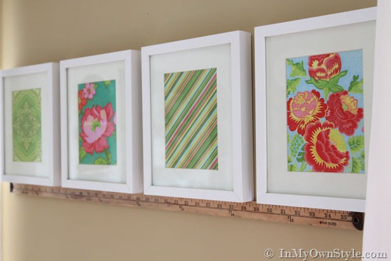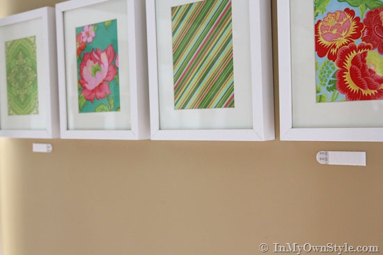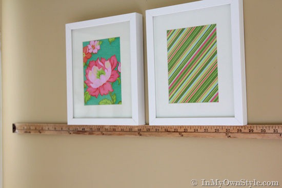 You will need enough frames to go around the room or corner of a room. I lined my frames up along the floor first to figure out how many I would need and the spacing between each. If you plan to go around a corner – figure the spacing needed there first – and then use that spacing for the rest of the frames.