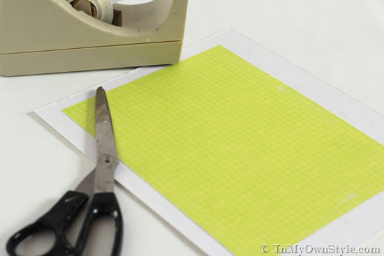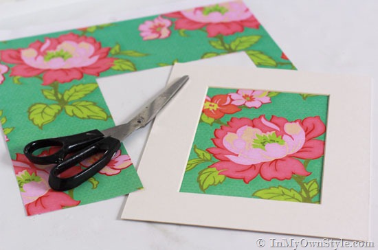 1. Remove matte from frame. Cut desired patterns from scrapbook paper a bit larger than matte opening.