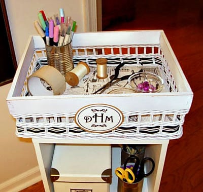 Zoom… Zoom – Now I have a neat and organized way to house the materials I need to complete the mindless parts of decorating and craft projects while I watch television. I even plan to use it as a place to gather paints, brushes, and other supplies when I paint a room. I loved wheeling my cart around so much, I made another rolling organization basket.