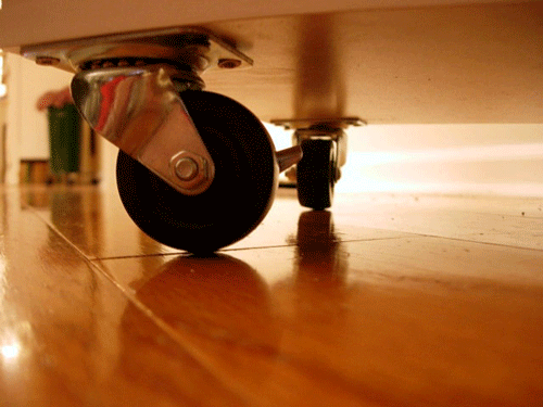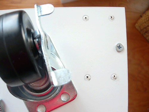 I used 16 screws and a power screwdriver to attach the wheels to the bottom of the assembled cube.