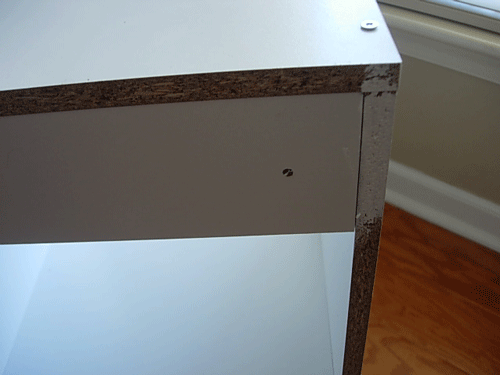 Since the cube was designed to mount on a wall, the back had unfinished edges. I just dabbed some white craft paint on to cover the bare particle board.